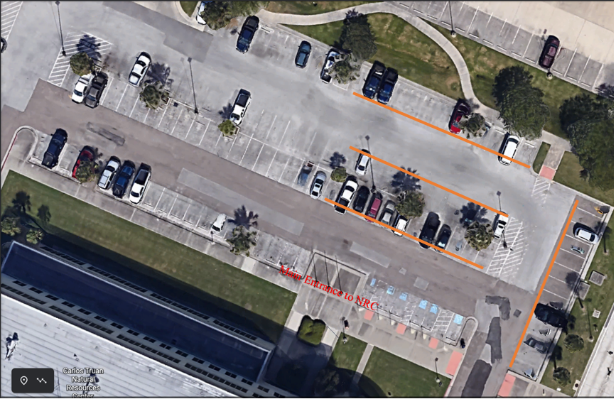 Complimentary parking will be available in the NRC parking lot for off-campus guests attending Coastal Bend GIS Day. A parking attendant will be posted at the lot entrance; guests are asked to check in with the attendant and park in designated areas of the NRC parking lot (see included map for details).